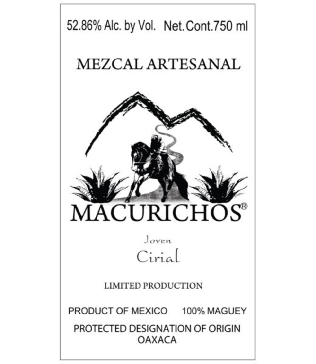 Macurichos Mezcal Artesanal Joven Cirial 750ml