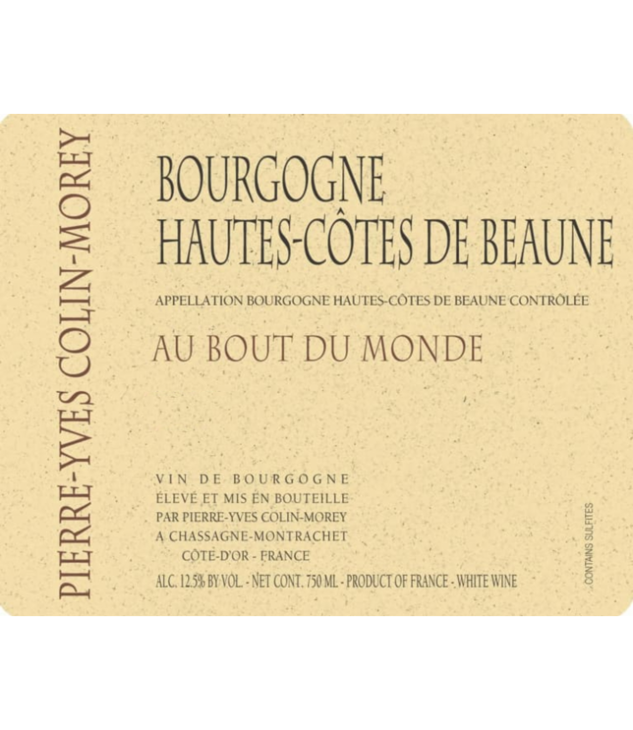Savor the vibrant minerality of Pierre-Yves Colin-Morey's Hautes Côtes de Beaune Blanc Au Bout du Monde 2021. A Chardonnay capturing the essence of the Hautes Côtes de Beaune, with notes of citrus, white flowers, and a crisp acidity.